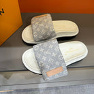 LV VELCRO SLIPPERS IN GREY MONOGRAM JACQUARD