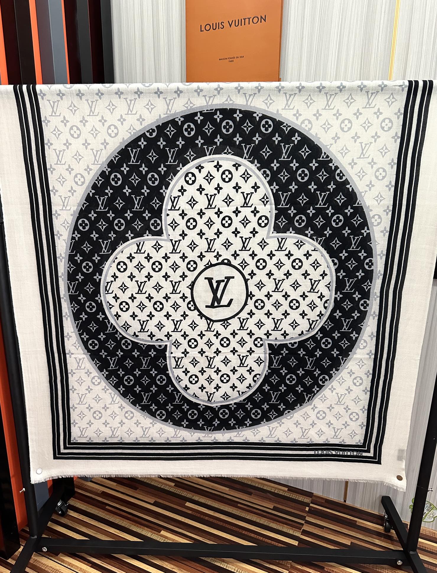 SCARF 200 CM IN BLACK MIX WHITE CASHMERE 400032