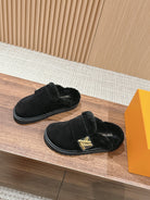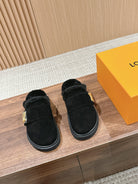 LV Cosy Flat Comfort Clog Black Fur Lining Suede