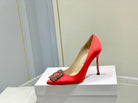 Manolo Diamond Buckle Pumps 10cm Red Silk 574251