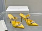 Manolo Mules Crystal Yellow Silk Satin 219384