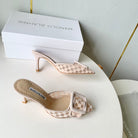 Manolo Mules Latest Checkerboard Beige Fabric Leather 528011