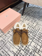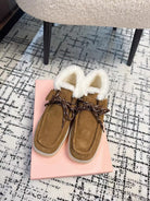 Miu Ankle Boots Cinnamon Brown Fleece Lining Cow Suede