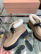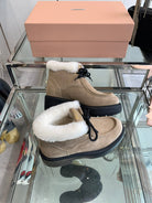 Miu Ankle Boots Khaki Brown Open-Hemmed Cowhide