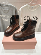 Miu Lace-Up Boots Syrup Brown Waxed Calfskin