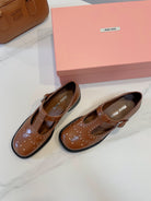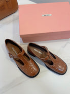 Miu Loafers T-Strap Tabacco Color Cowhide