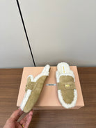 Miu Mule Half Fur Light Brown Suede