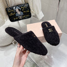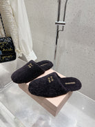 Miu Slippers Black Wool Fabric