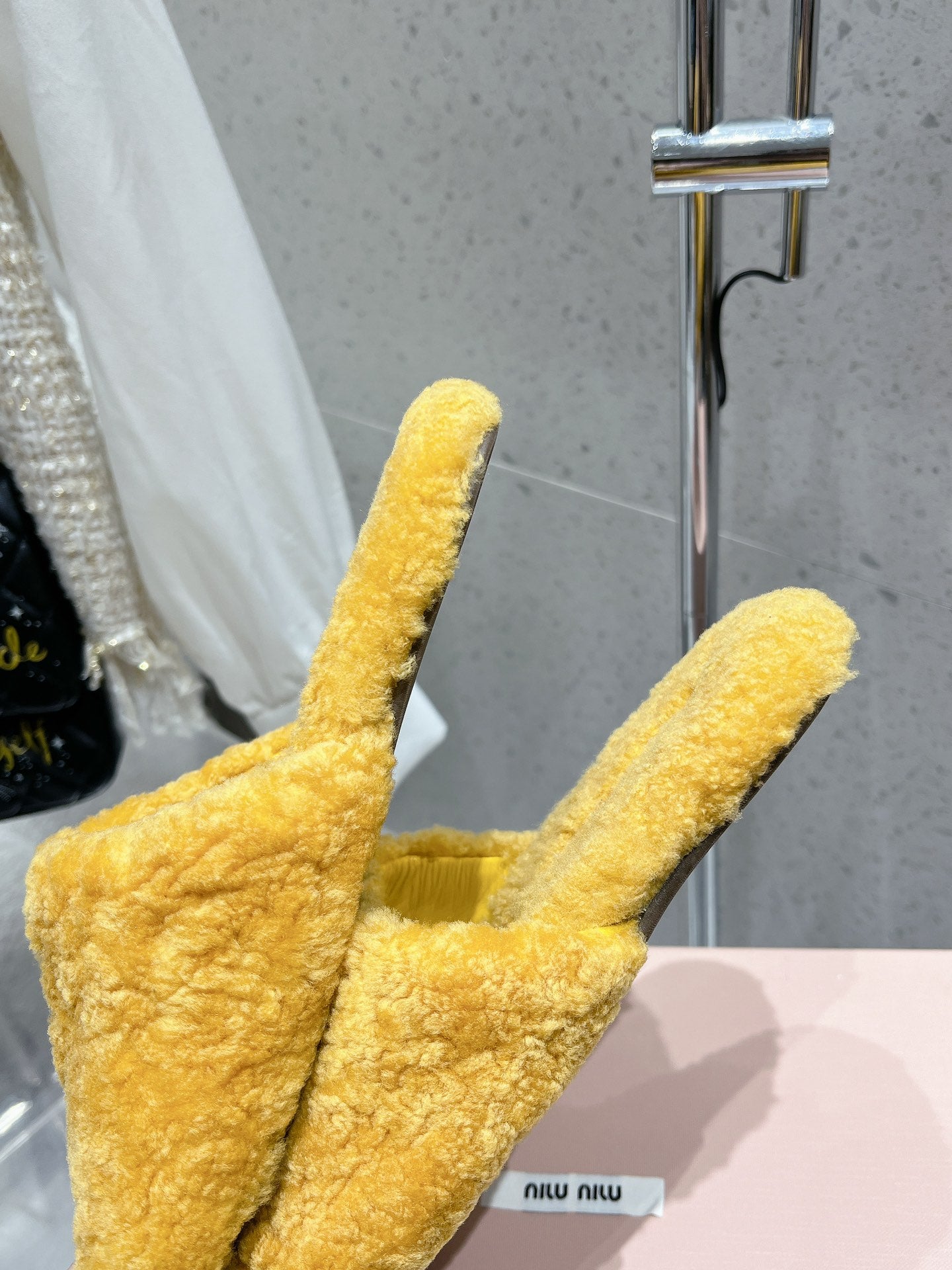 Miu Slippers Dark Yellow Wool Fabric