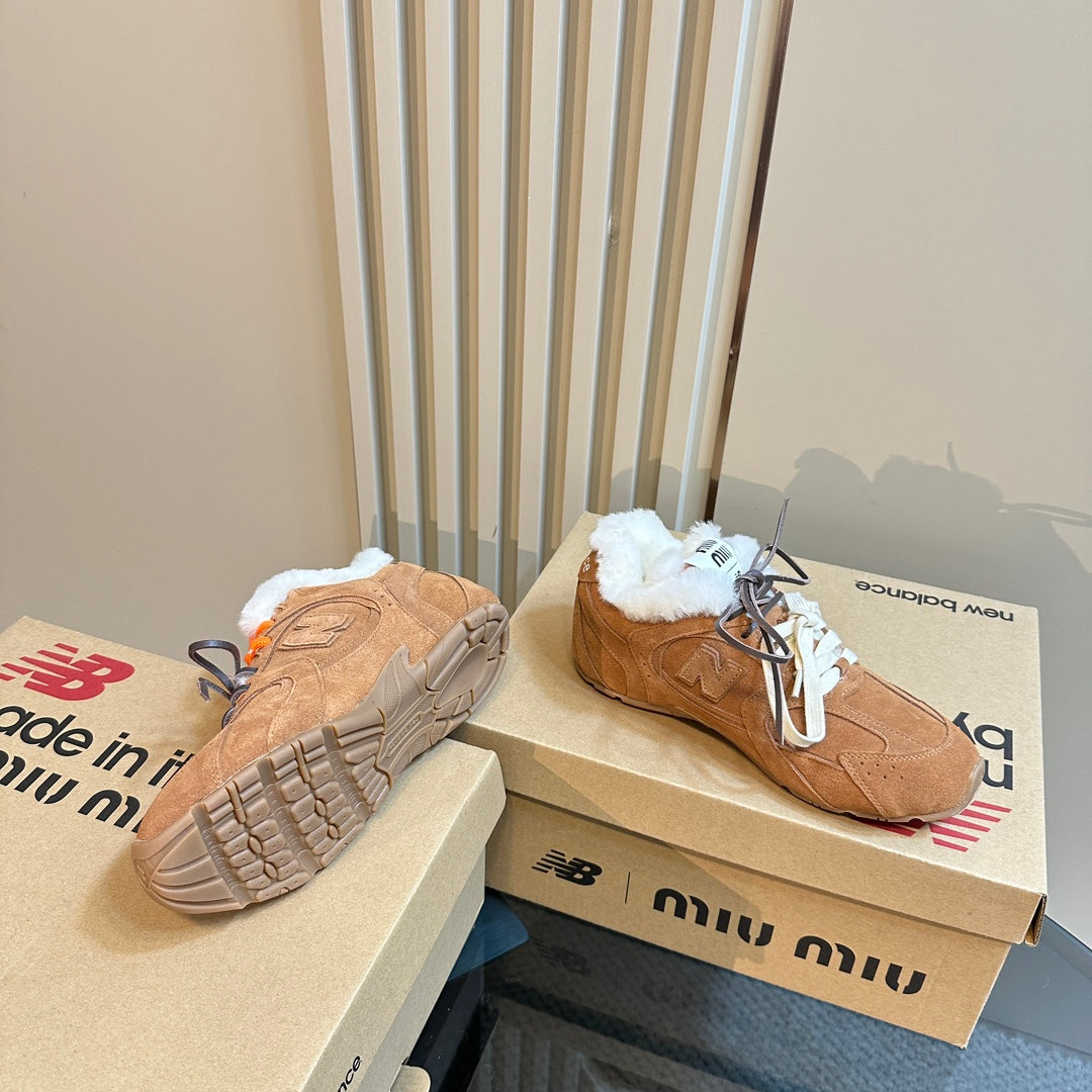 Miu x Balance 530 SL Sneakers Brown Yellow Fleece Lining Suede