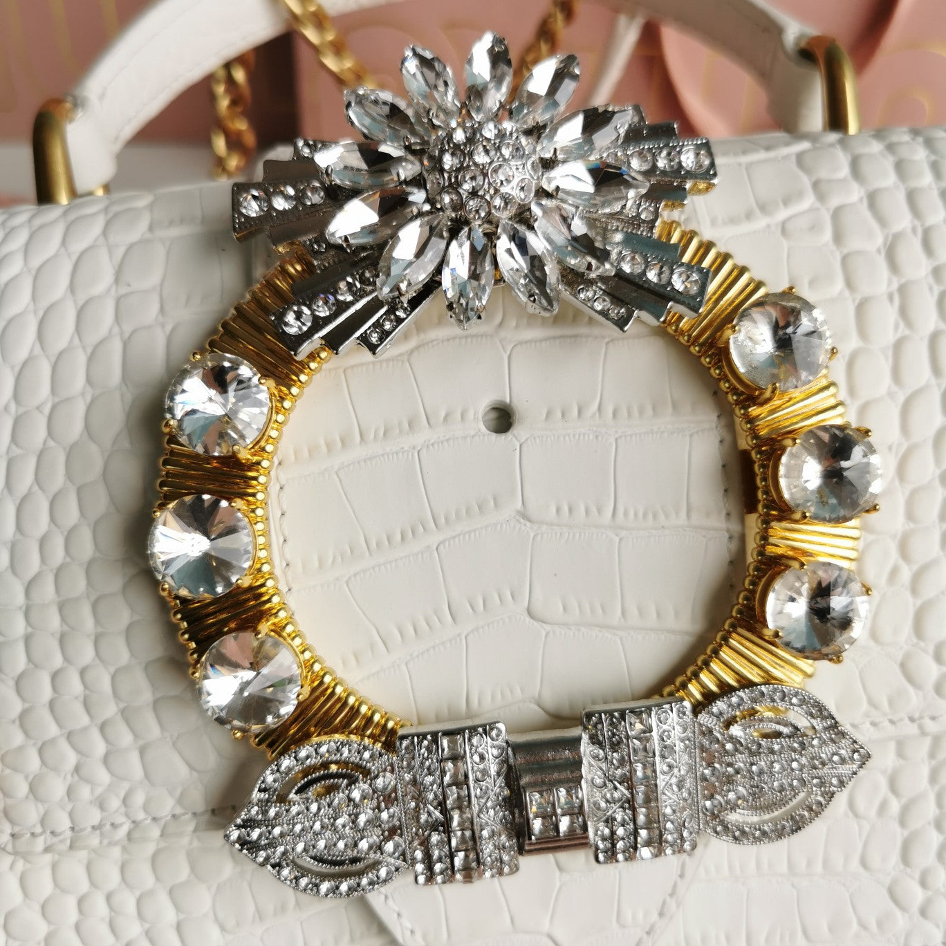 LADY 20 HANDBAG IN CROCODILE PATTERN WHITE CALFSKIN