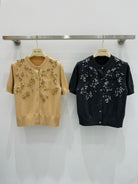 Miu Embroidered Cashmere Short Sleeve Cardigan 229364