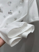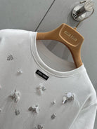 Miu Miu 25 beaded sequined flower short-sleeved T-shirt White Cotton 210497