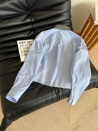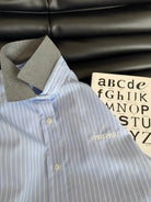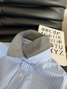 Miu Miu 25 Knitted Collar Patchwork Striped Shirt Blue Gray Cotton