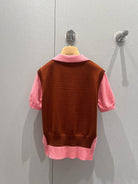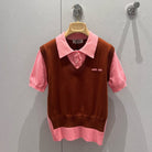 Miu Miu 25 Two-piece Vest Polo short-sleeved Knitted Top Pink Brown Wool 210563
