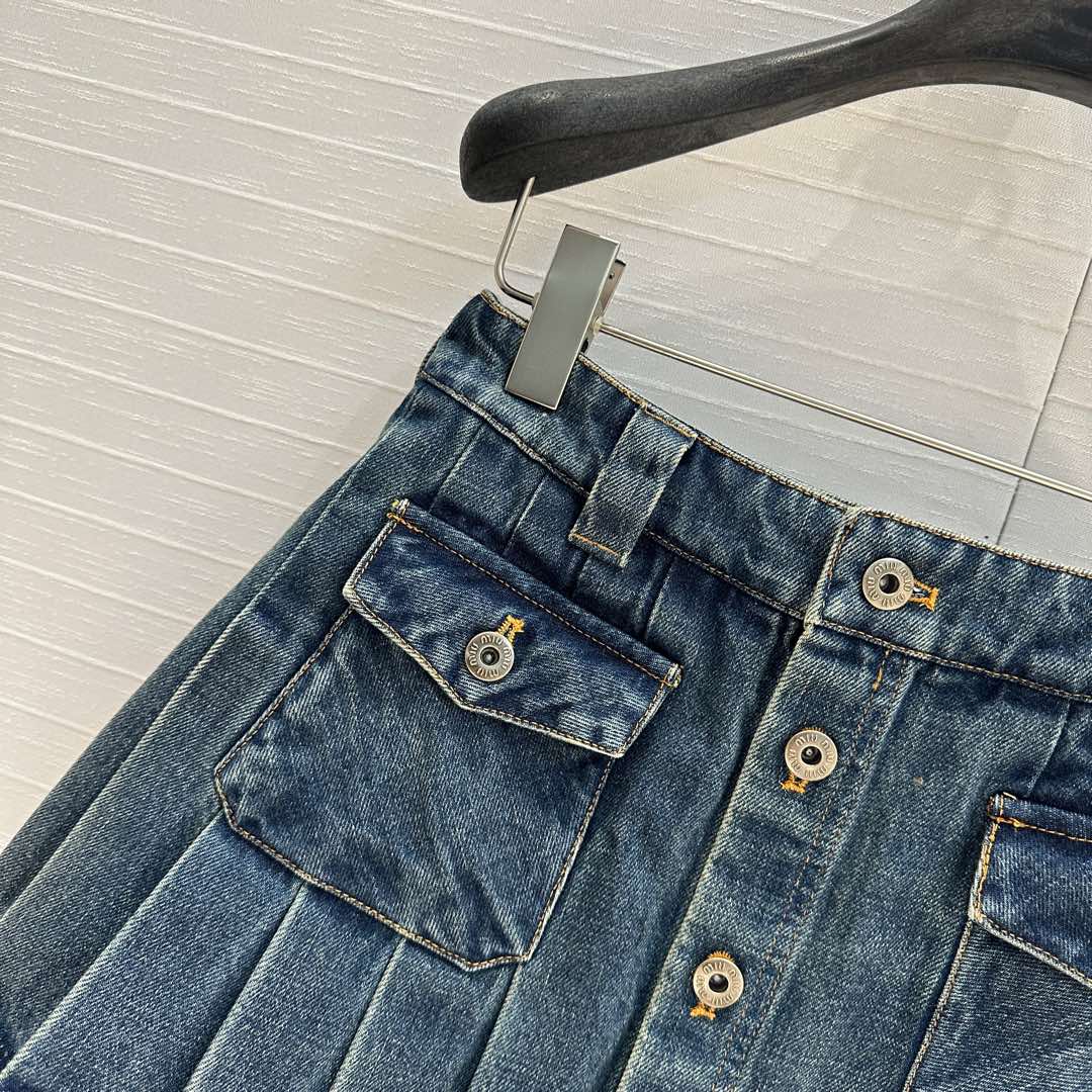 Miu Miu Denim Pleated Long Skirt Blue Cotton
