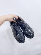 Miu-Church's Lace-Ups Black Glossy Nubuck Leather