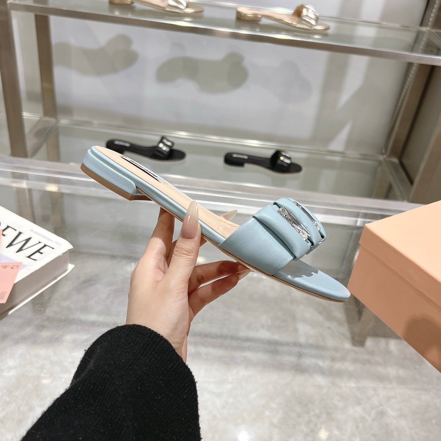 Miu 25C Slippers Light Blue Leather 235284