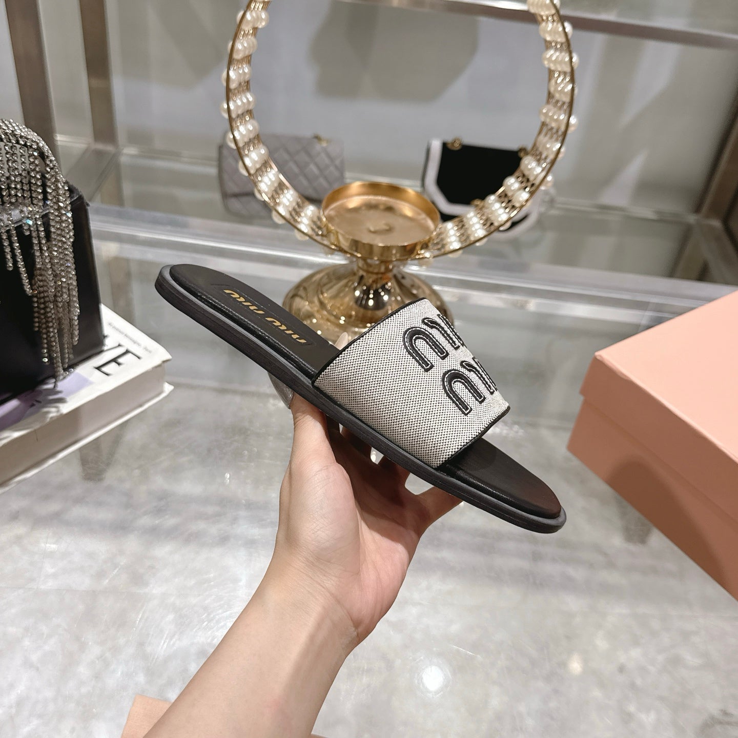 Miu Slippers Black Leather 235320