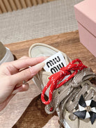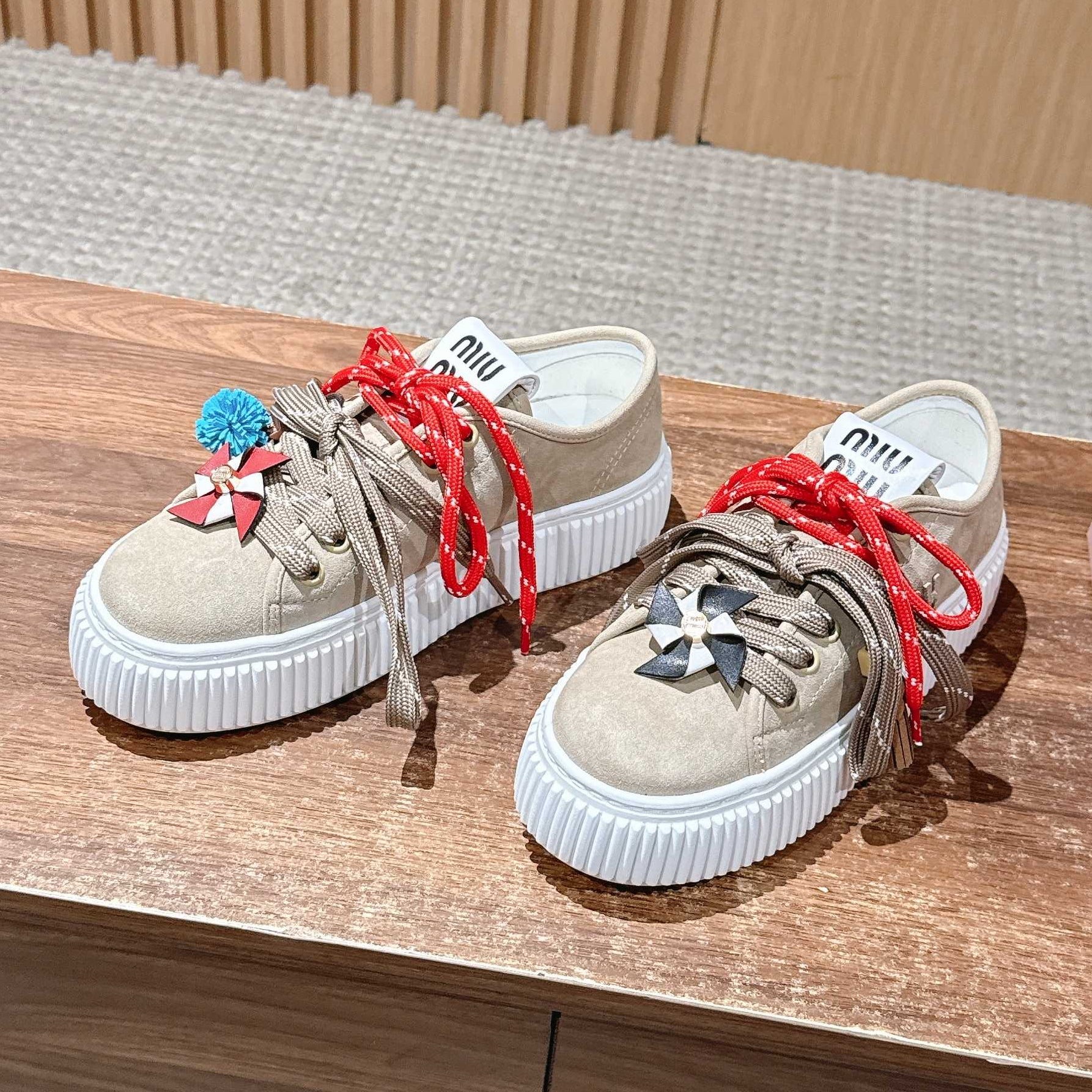 Miumiu 25 Platform Sneakers Beige Red Suede Wool 553690