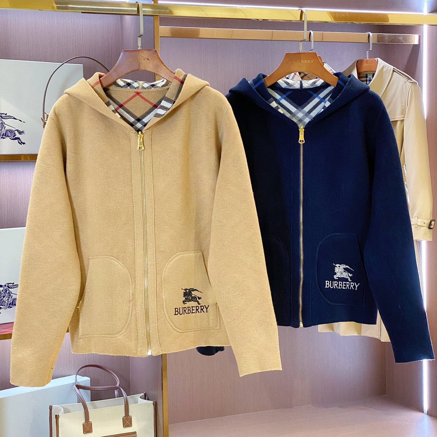 Burberry 25 Plaid Zip-up Cardigan Sweater Wool Cashmere