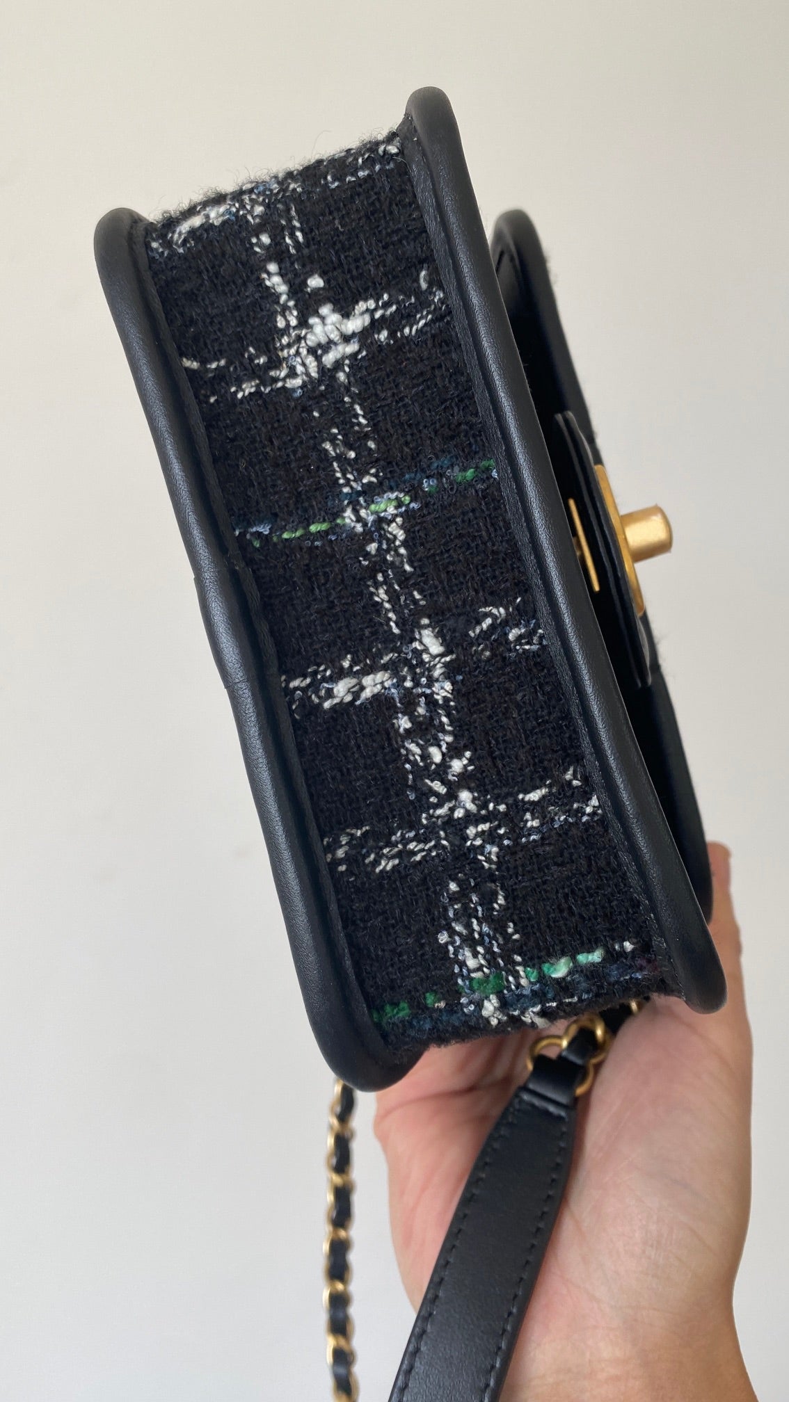 CC 2025 Small Flap Bag 21 Black Tweed Leather Gold Hardware