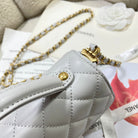 CC 25P Mini Flap Bag 20cm Top Handle Grey Calfskin Gold Hardware