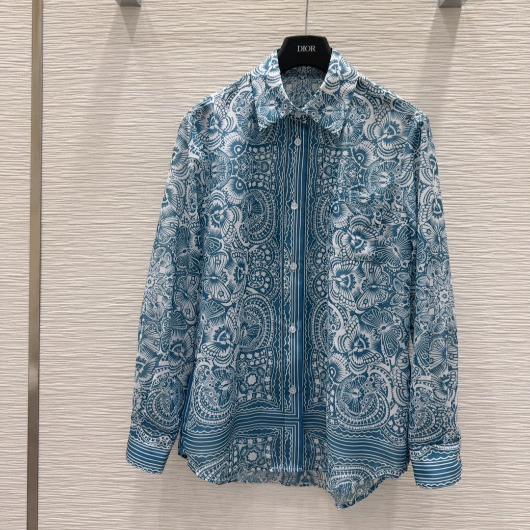 CD 25 Pattern Shirt Blue Polyester