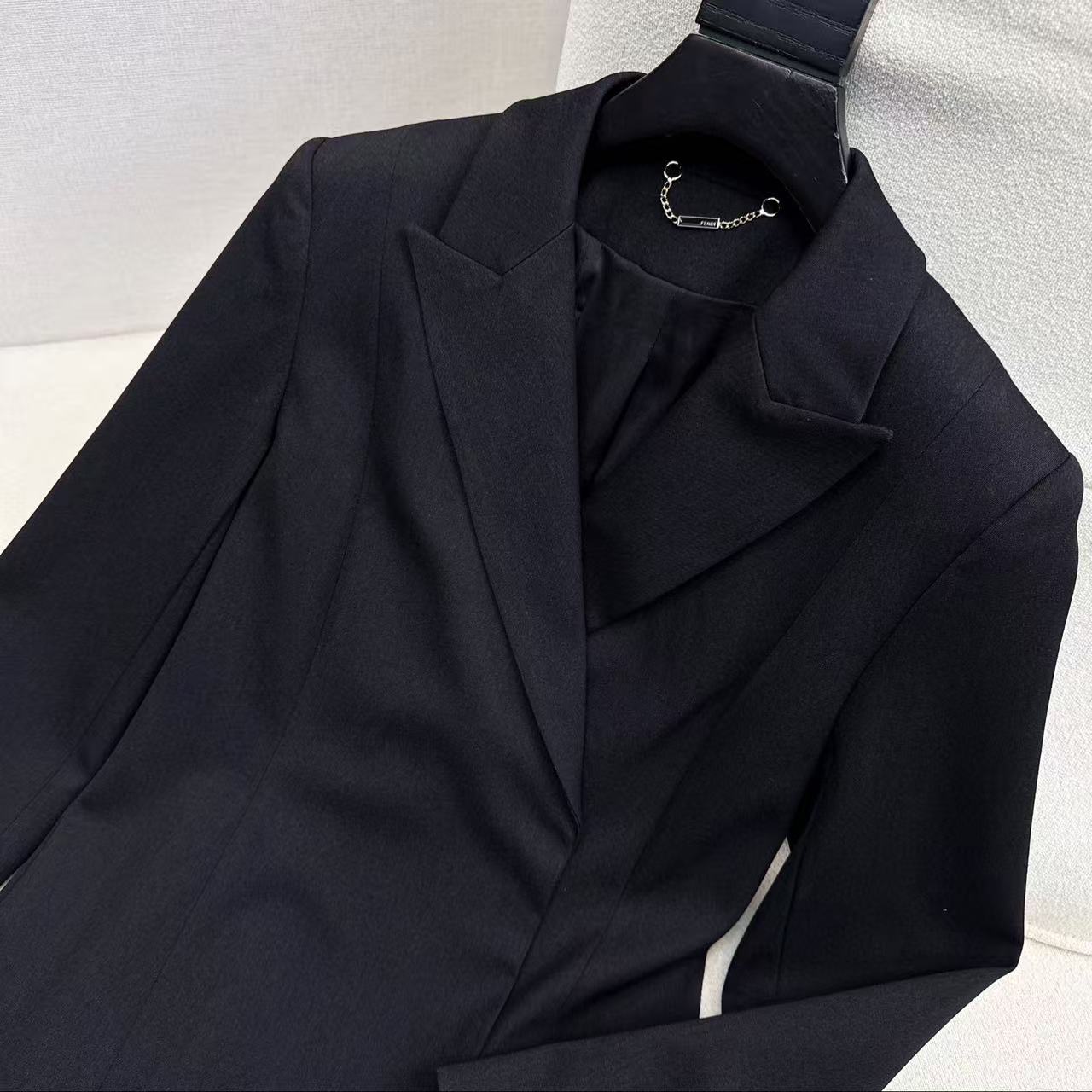 Fendi 25 Long Suit Coat Black Polyester