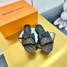 LV 25C LV x TM 6AM Flat Mule Black Bow Mocha Brown with Monogram Multicolore Leather 219951