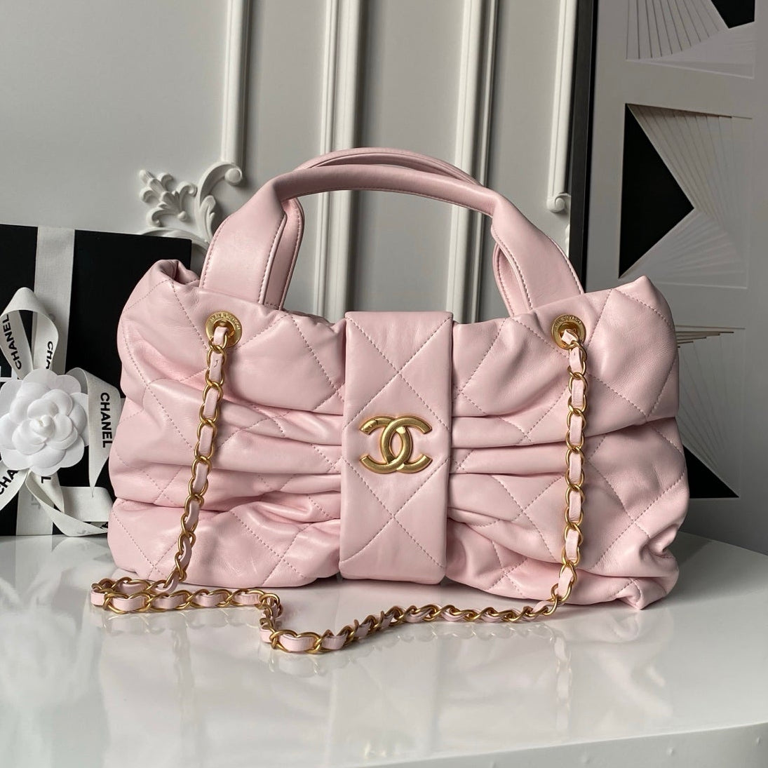 Chanel 25K Bowling Bag Black Gold Sheepskin 294981