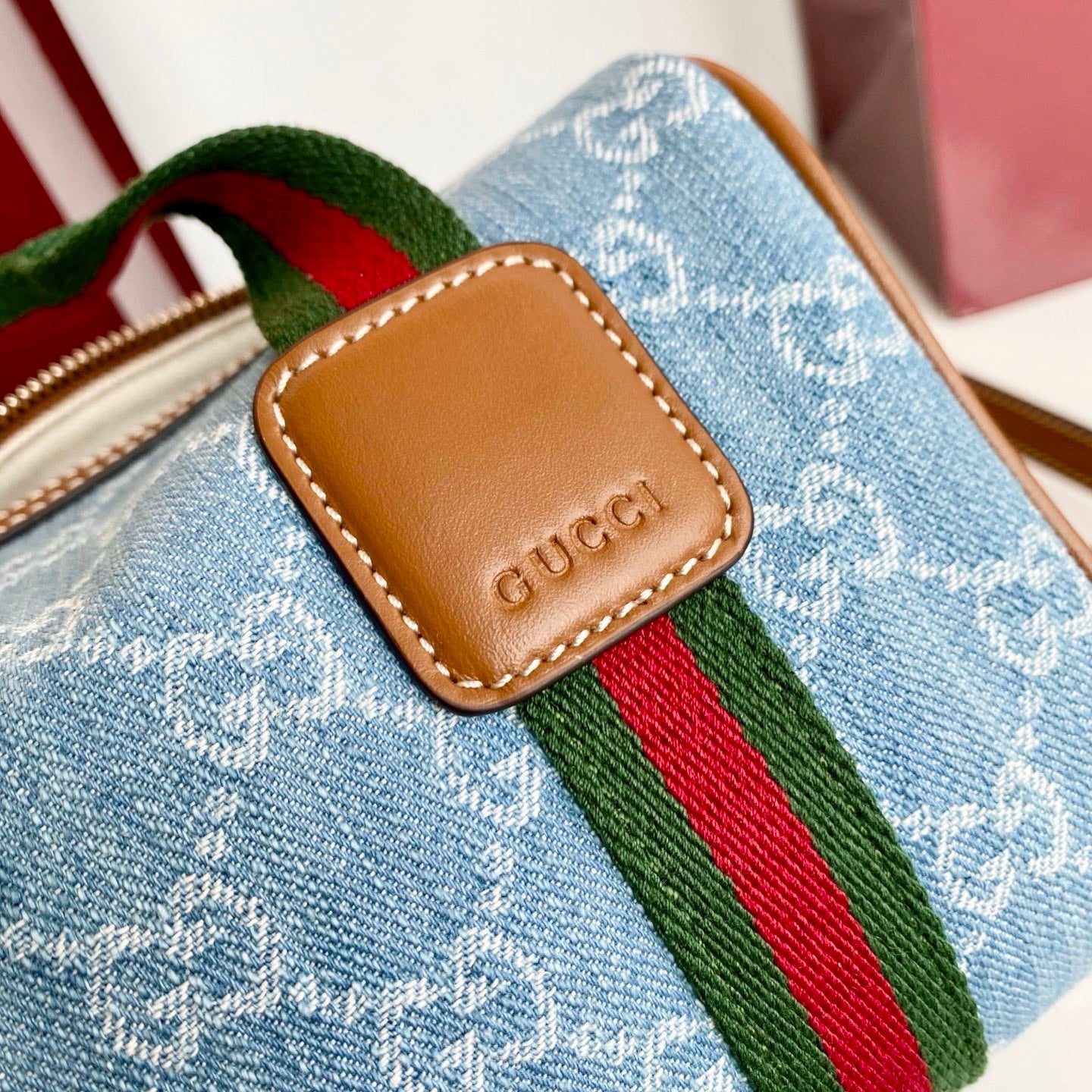 Gucci 25 Giglio 25cm Bag Blue Denim Leather 292387