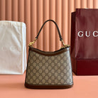 GG 2025 Interlocking G Large 25cm Bag Ebony Brown Canvas Leather 273677