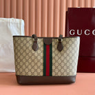 GG 2025 Ophidia 31cm Tote Bag Ebony Brown Canvas Leather