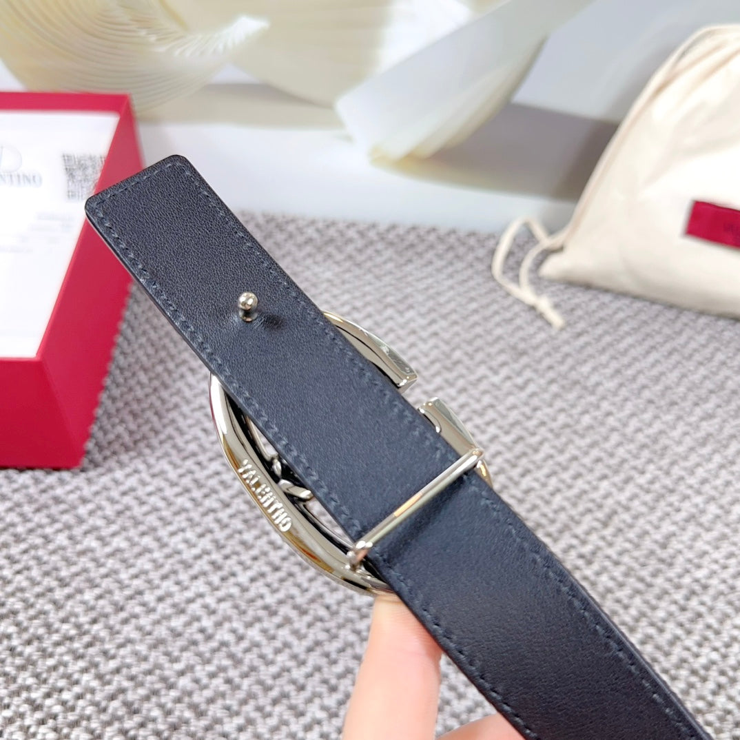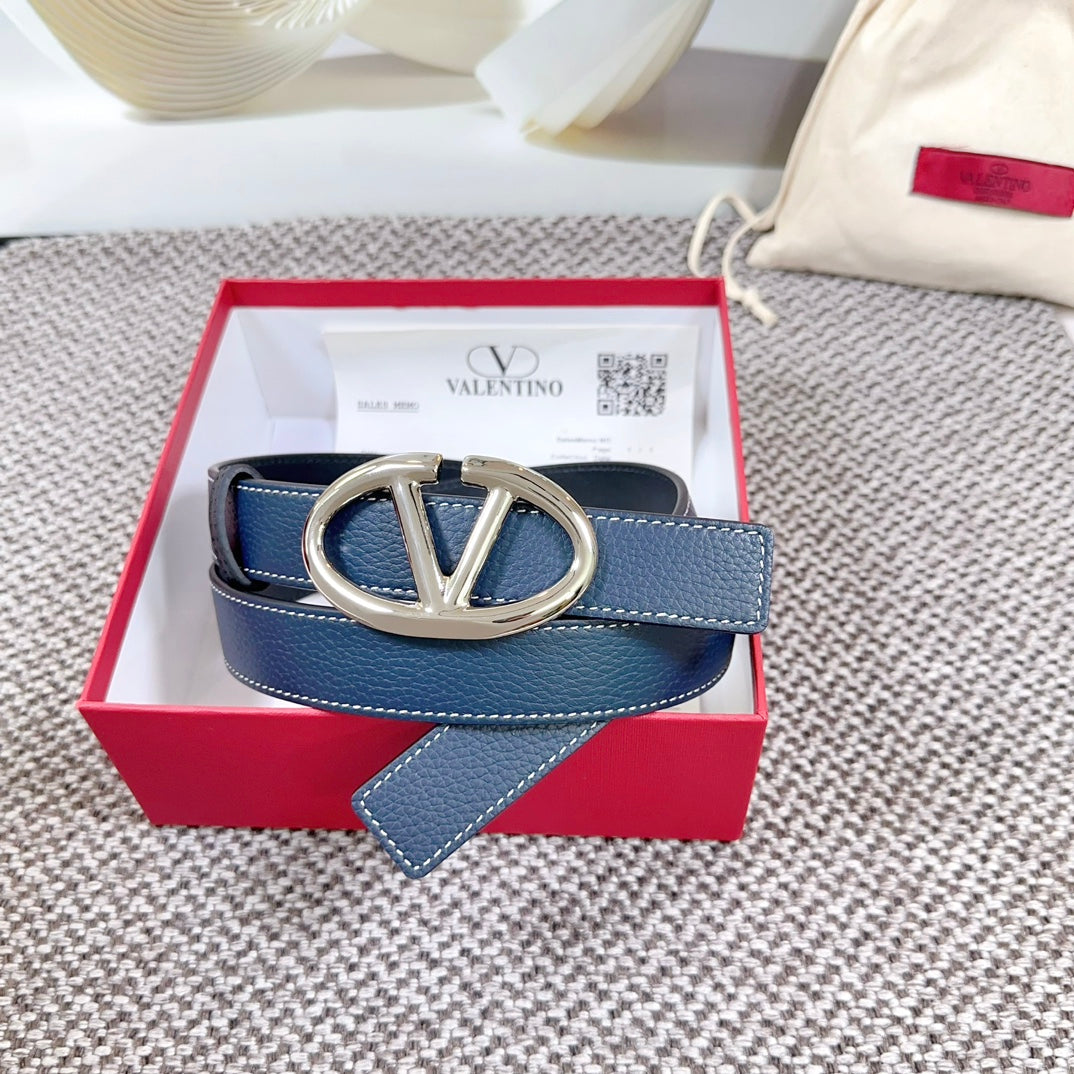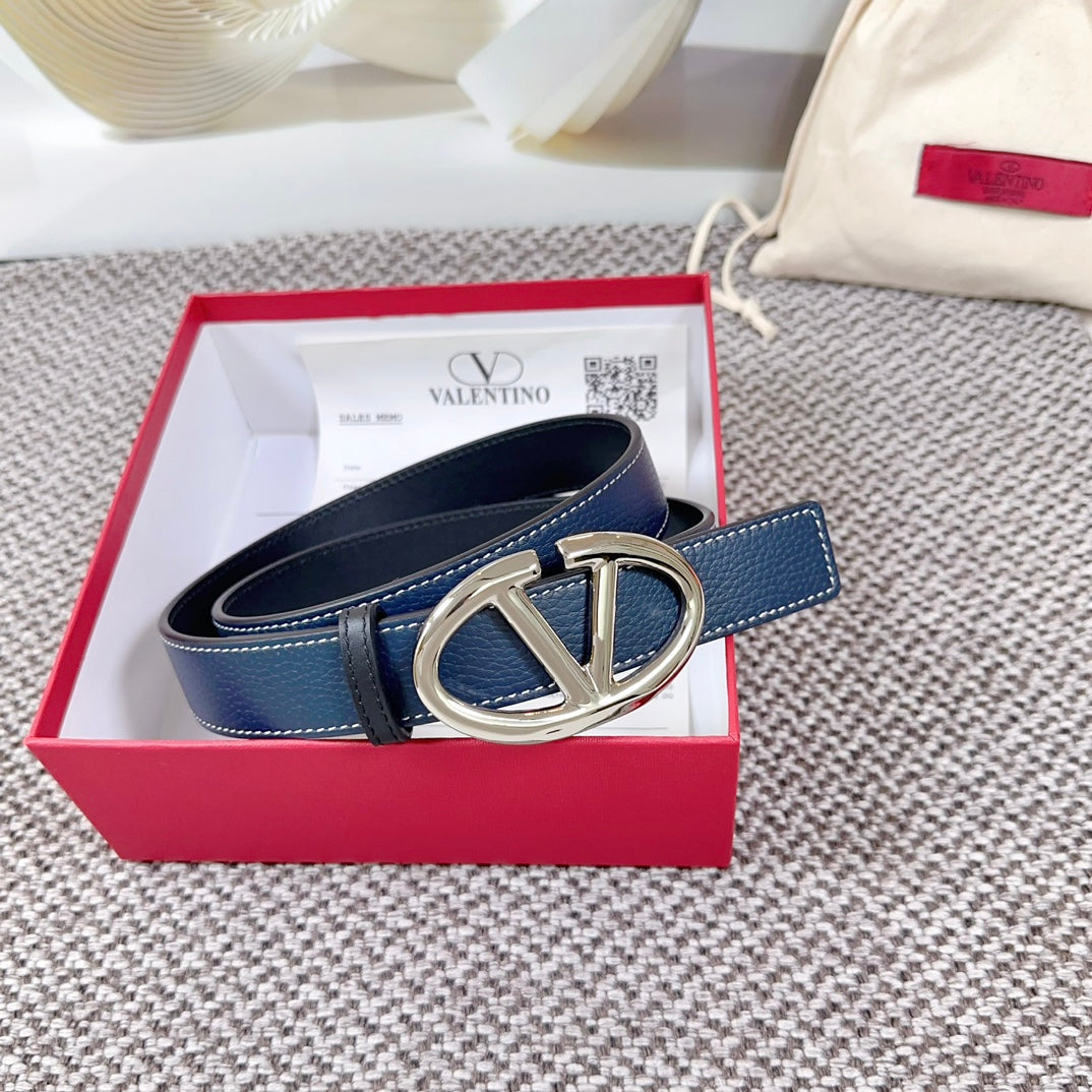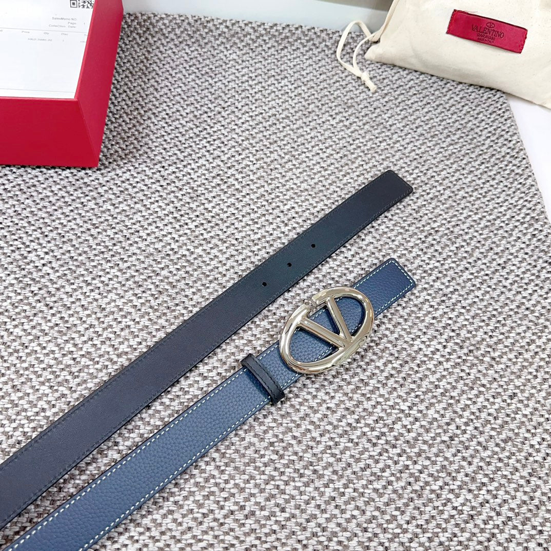 The Bold Edition Reversible Belt 30mm Blue Black Grained Calfskin Silver Buckle