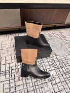 Chanel 25A Winter New Low Boots Black Beige Cowhide 393515