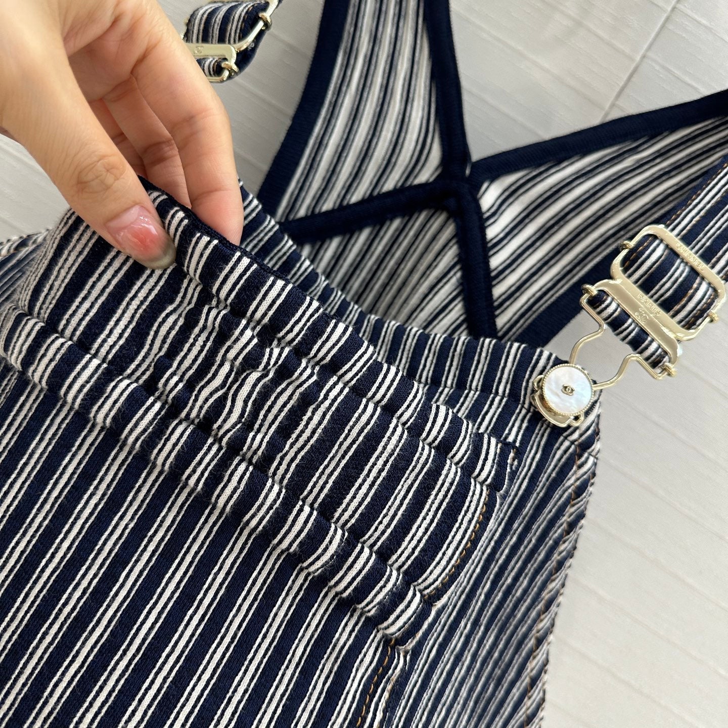 CC 25 Short Suspender Vest Dark Blue mix White Cotton
