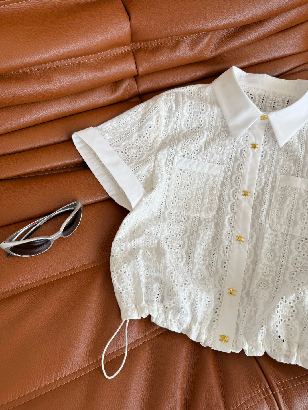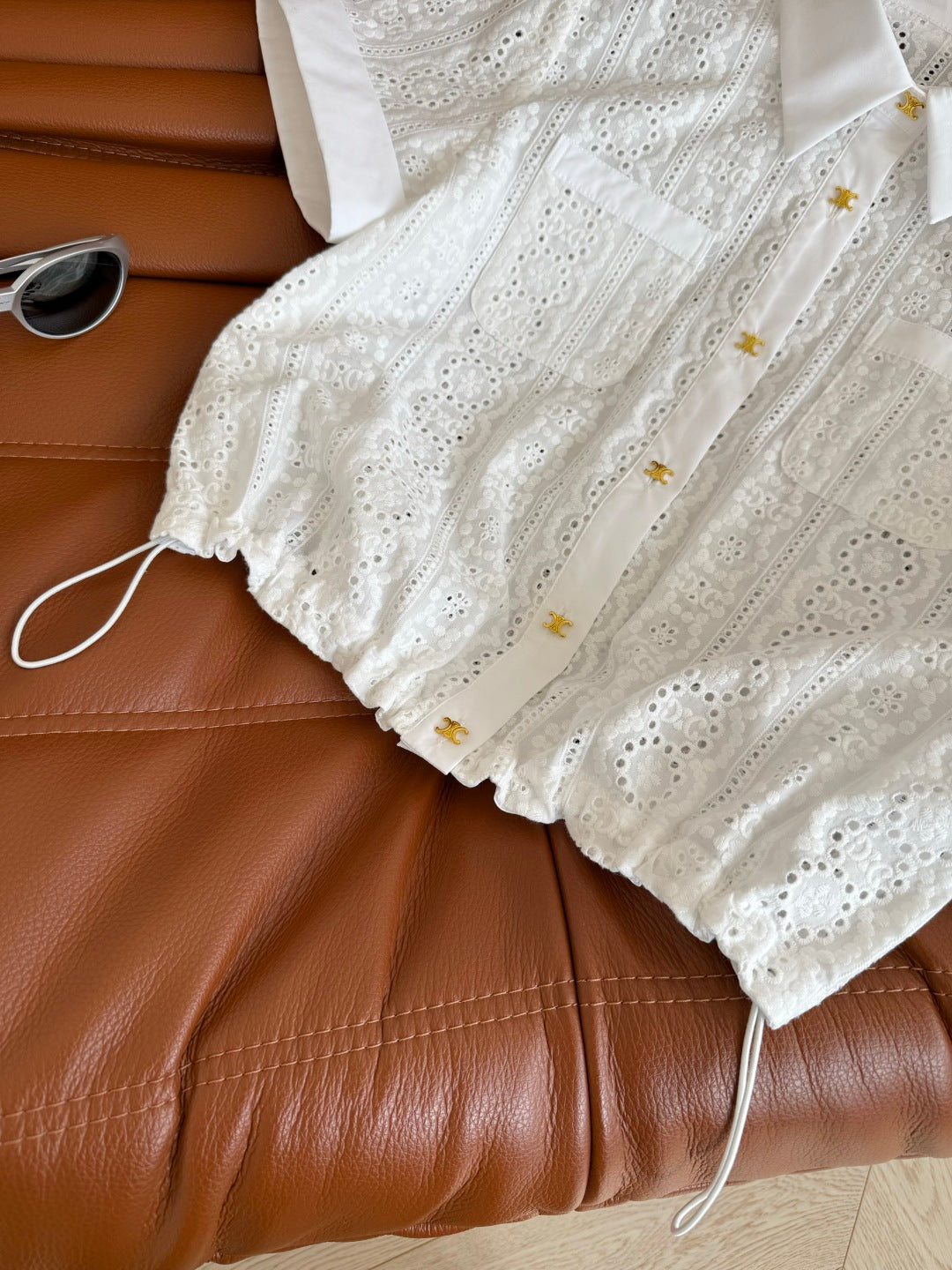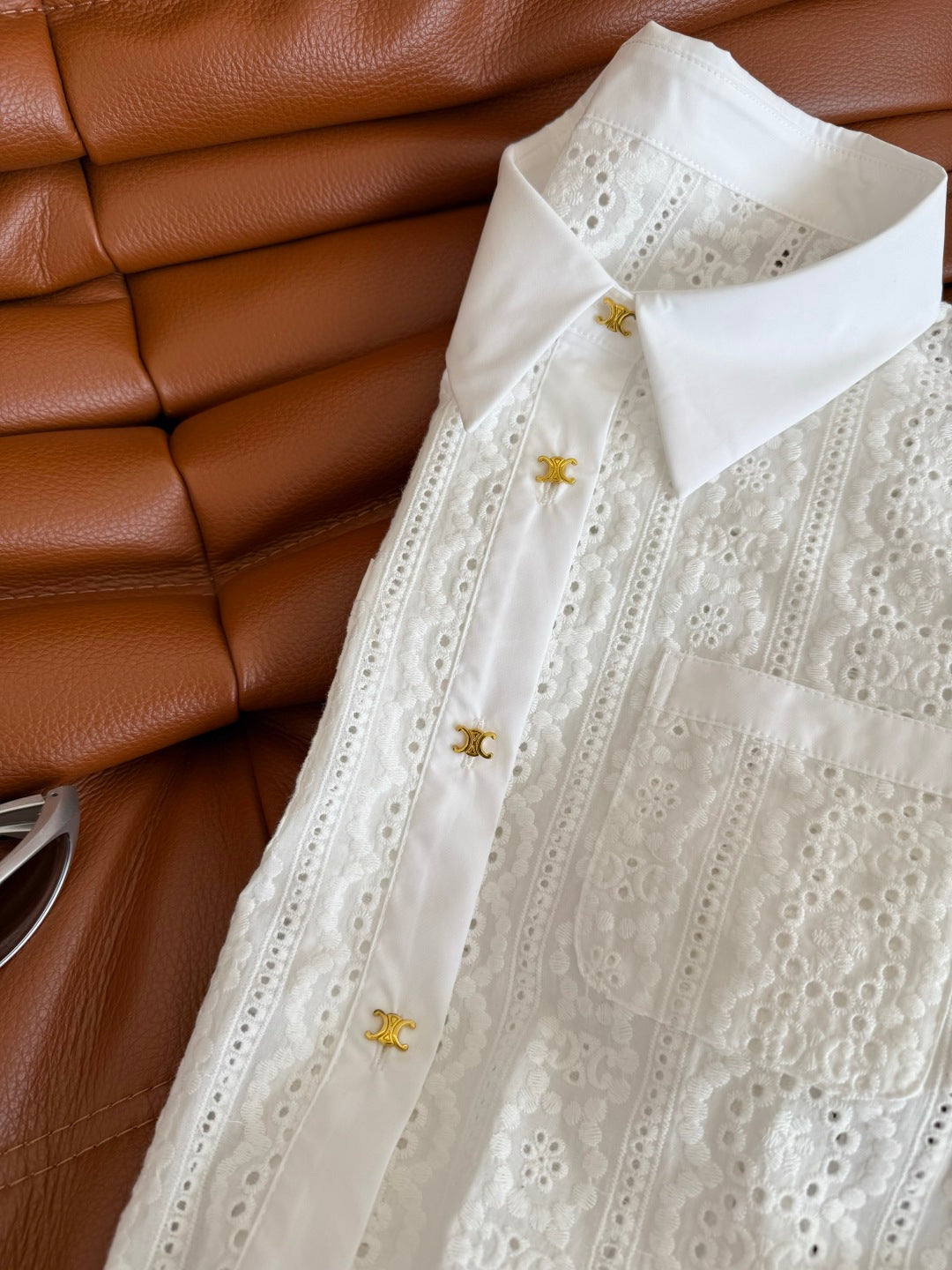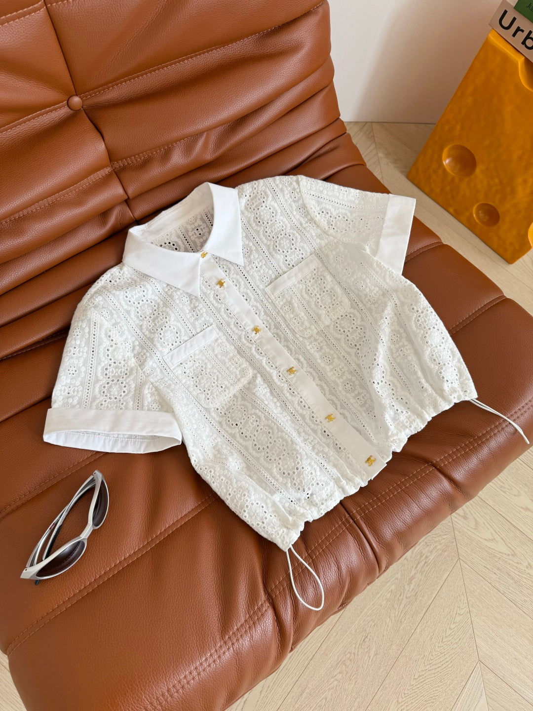 Celine 25 Hollow Wide Shoulder with Gold Metal Button White Cotton