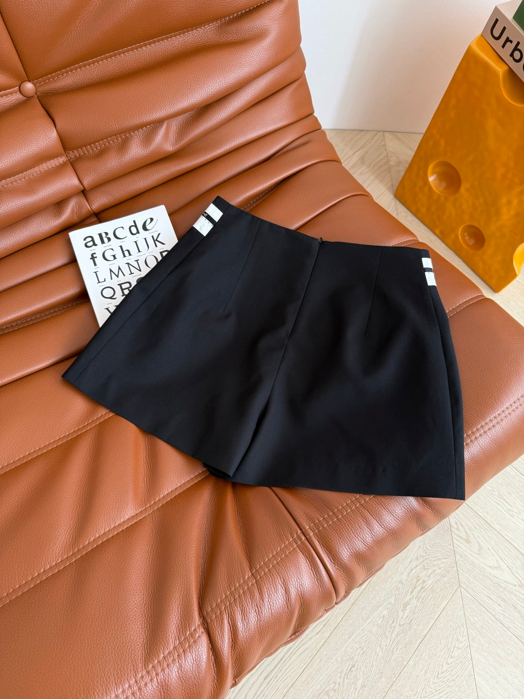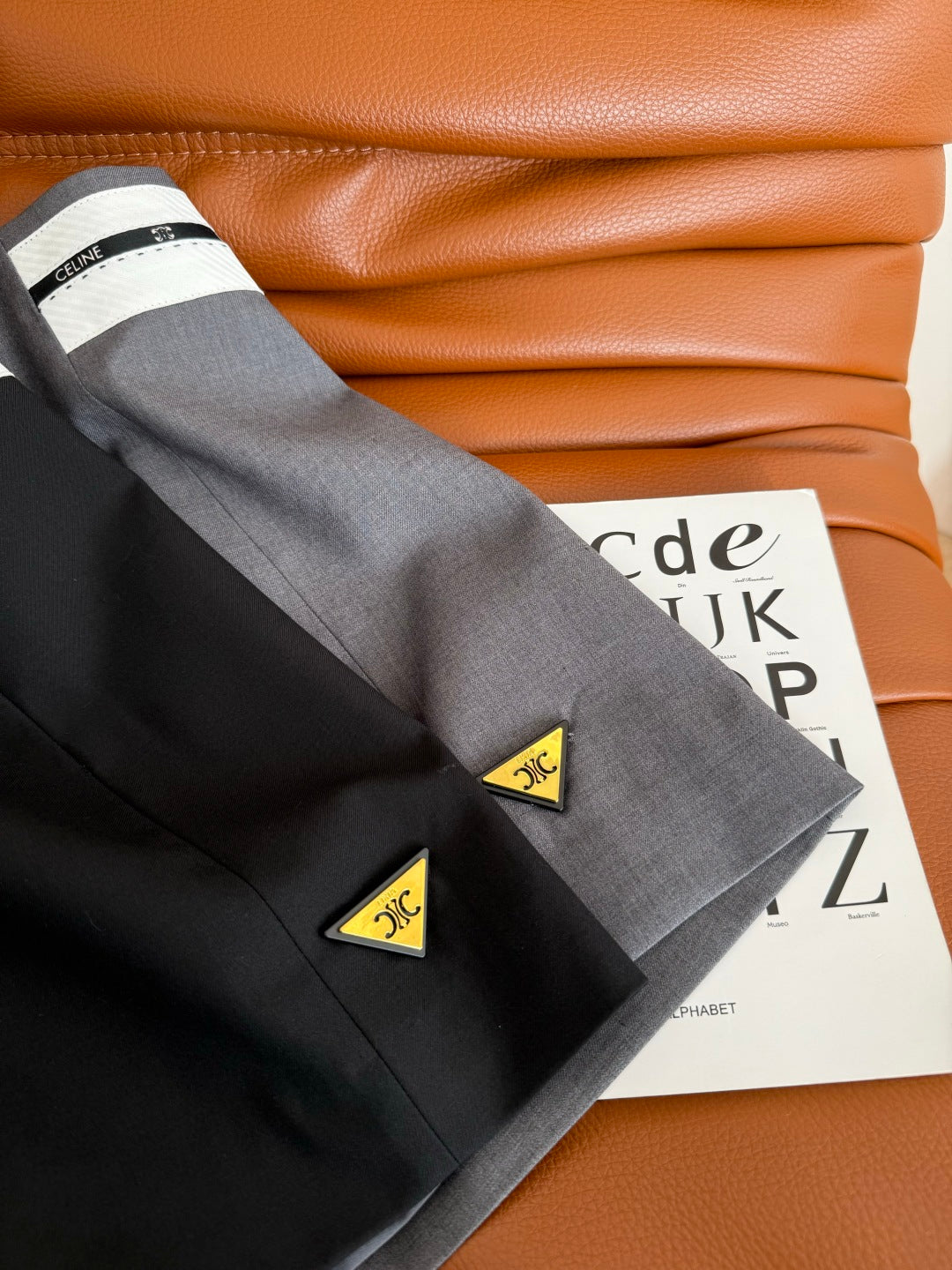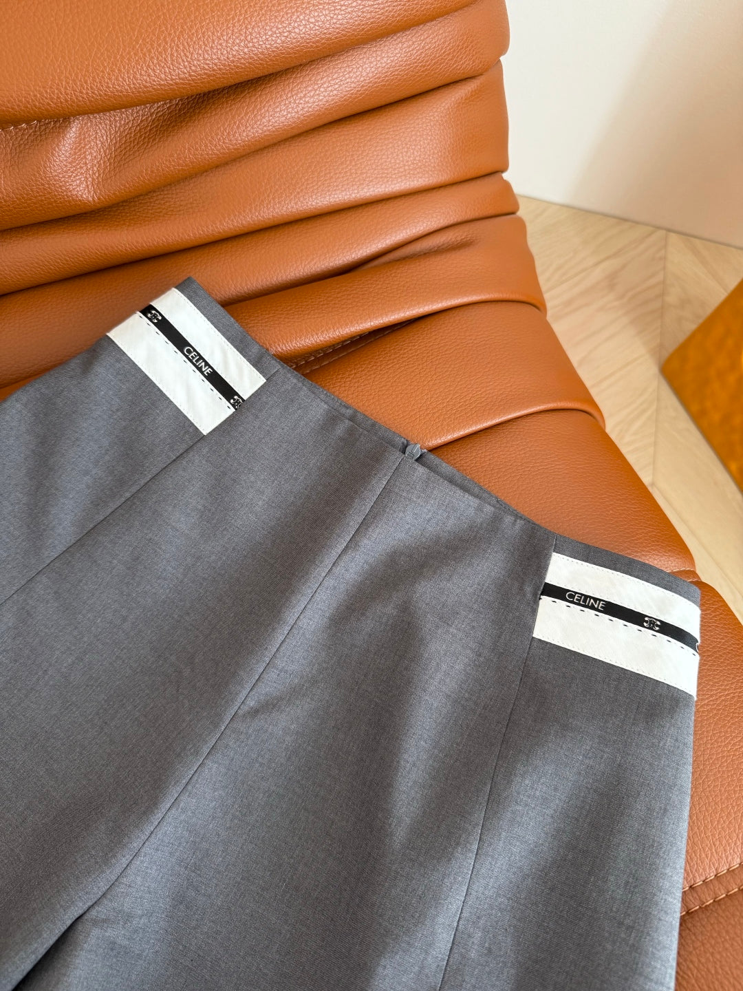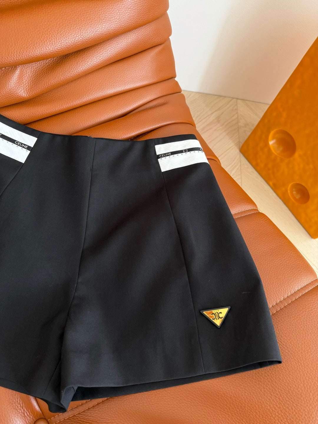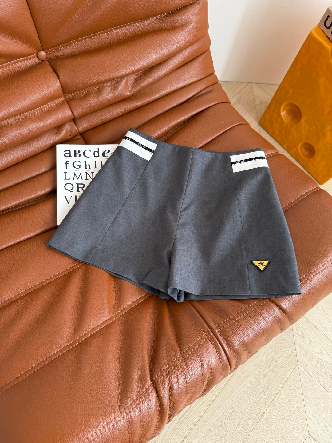 Celine 25 Wide-leg Shorts Black and Gray Polyester