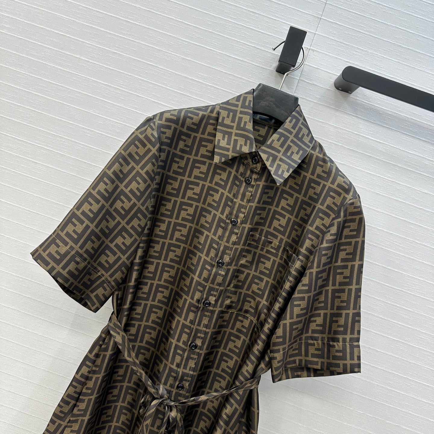 Fendi 25 Shirt Dress Khaki Silk
