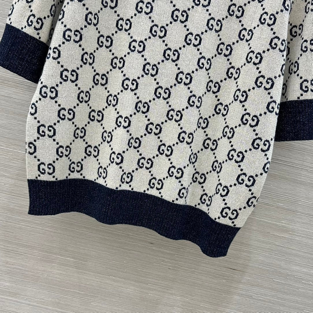 Gucci 2025 Knitted Round Neck Short-sleeved Top Blue Gray Cotton