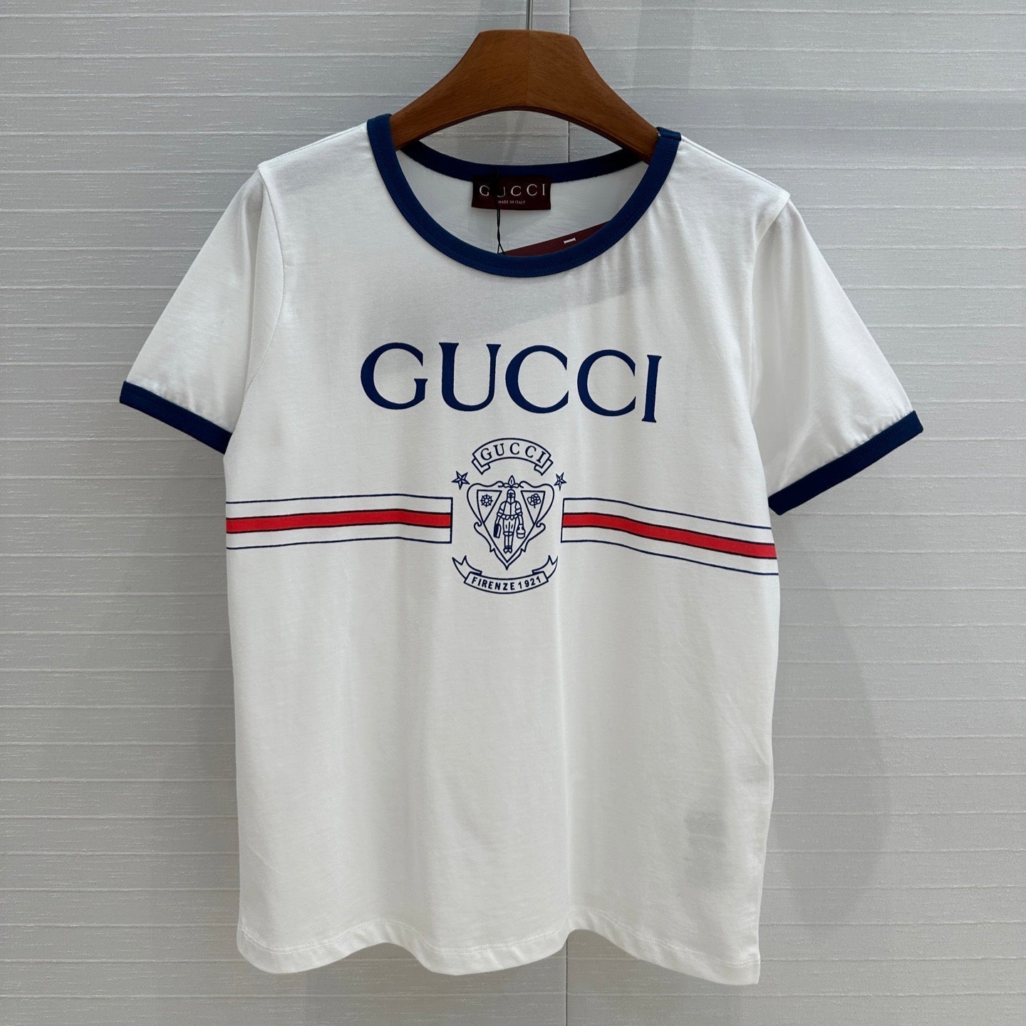 Gucci 25 Blue Letter Short-sleeved T-shirt White Cotton
