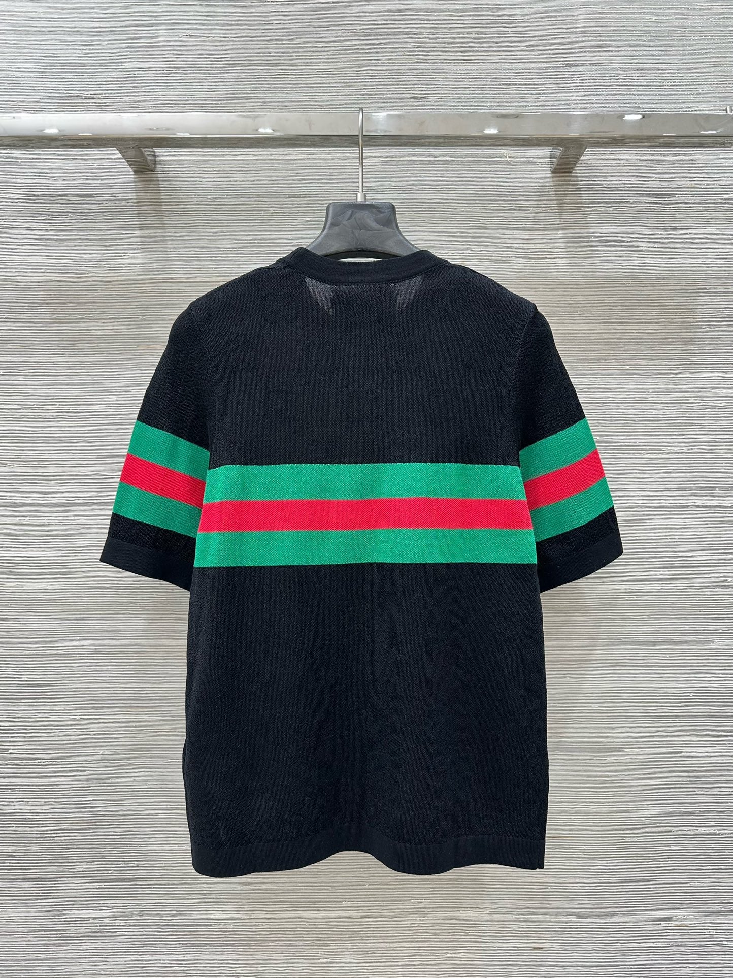 Gucci 25 Mesh Short-sleeved Top Black Tencel