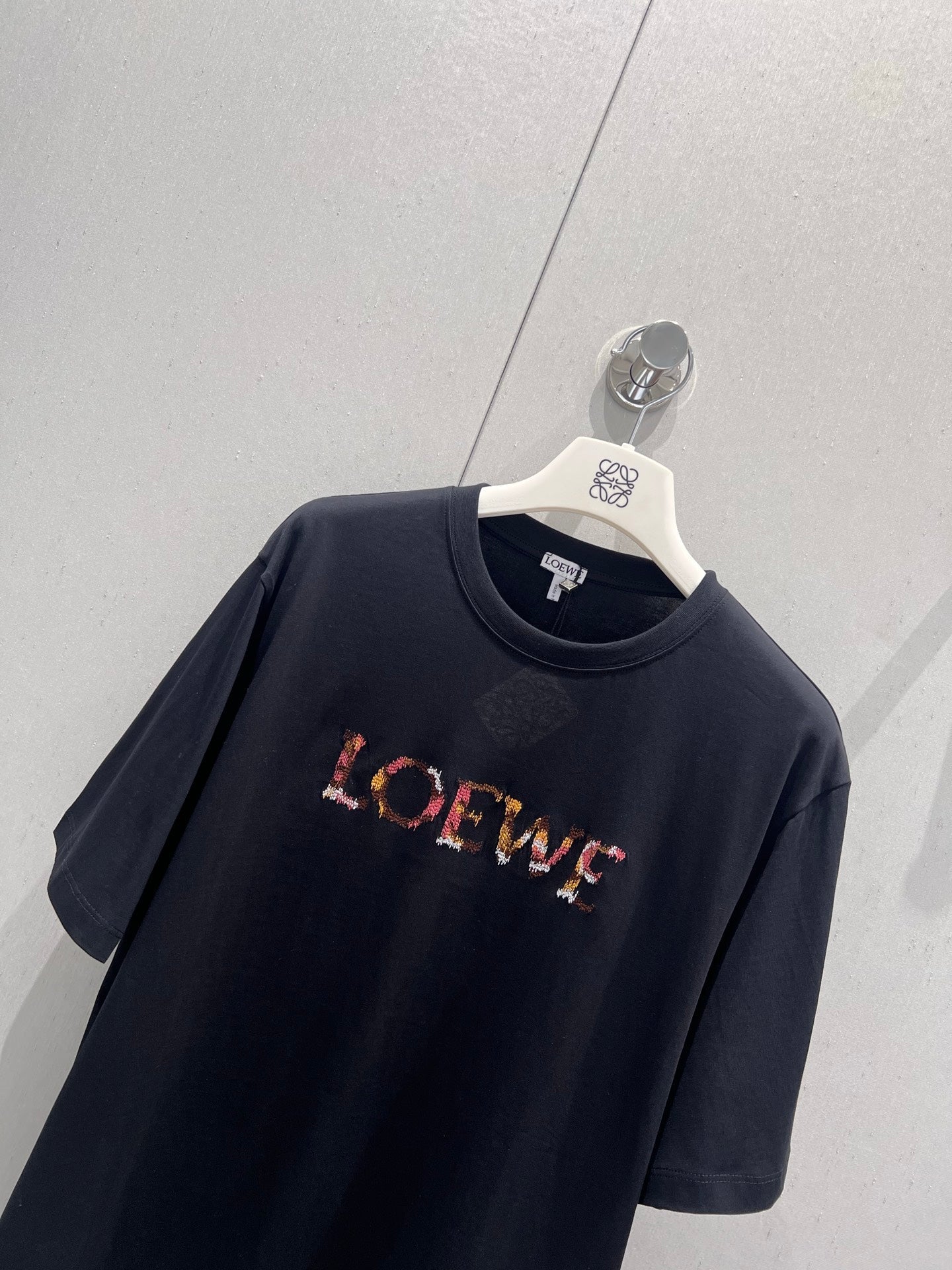 Loewe 25 Embroidered Short-sleeved T-shirt Black Cotton 221445