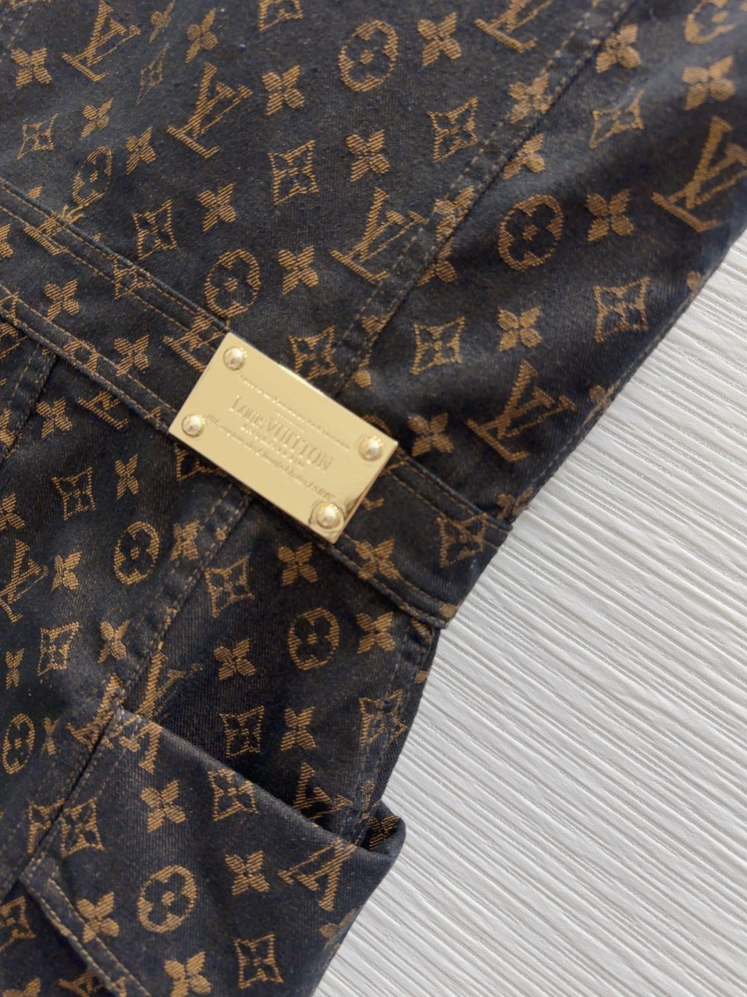 LV 25 Classic Logo Denim Vest Dress Black Cotton