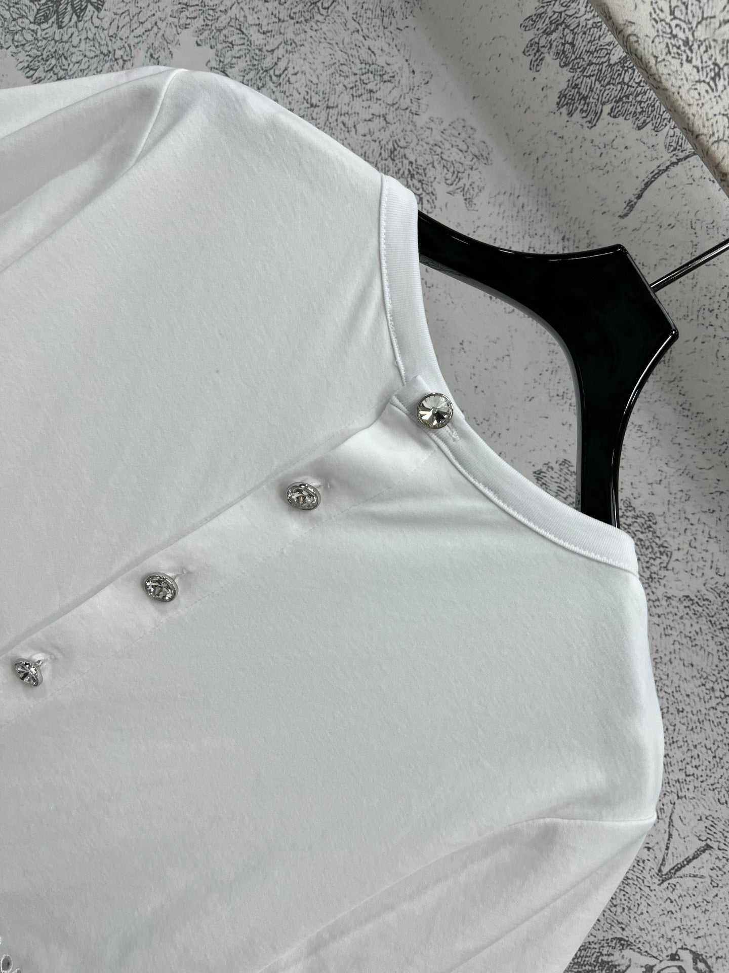 LV 25 Hollow Embroidery Design On The Hem T-Shirt White Cotton