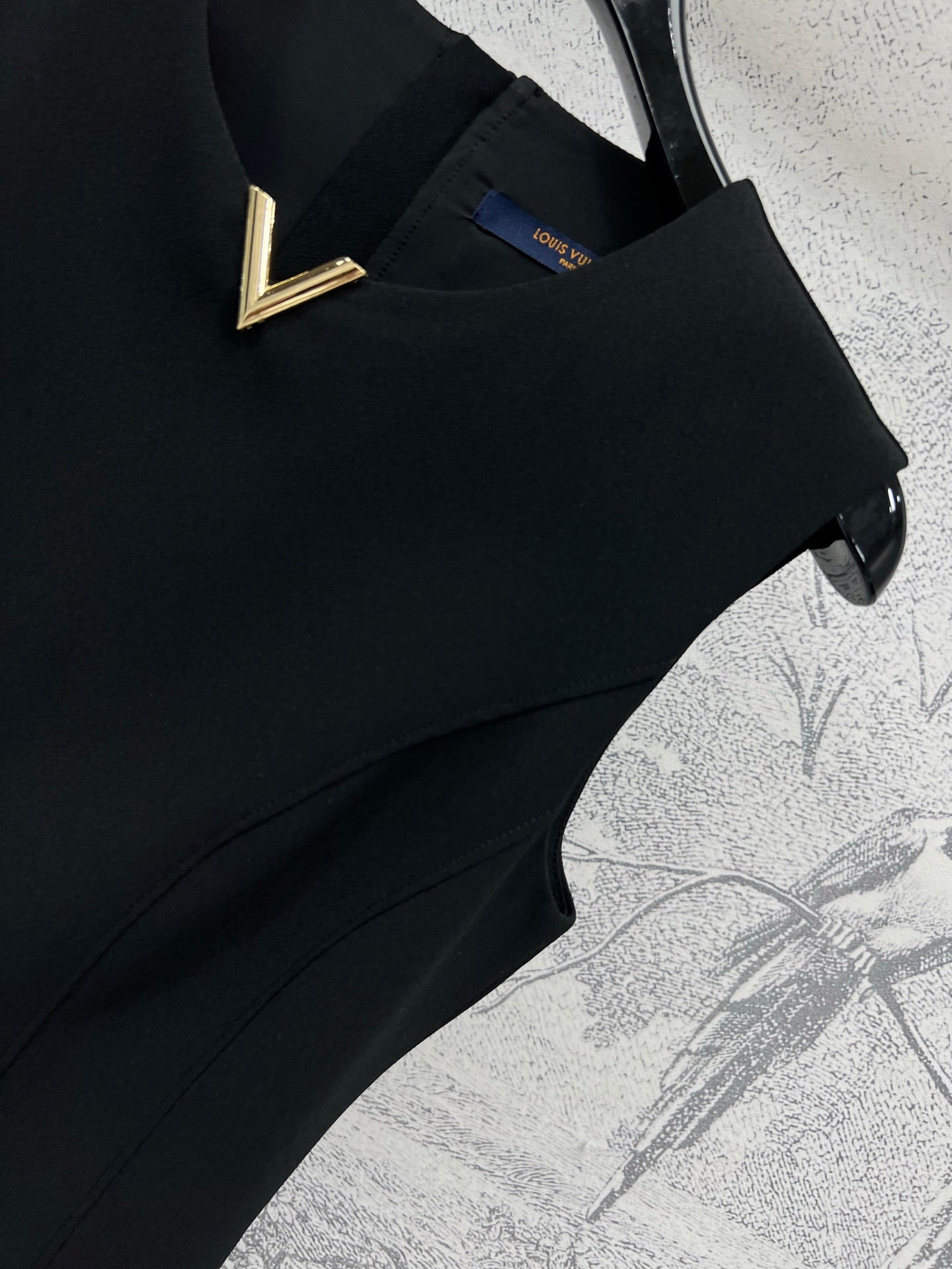 LV 25 Sleeveless Slim Fit Dress Black Poliester