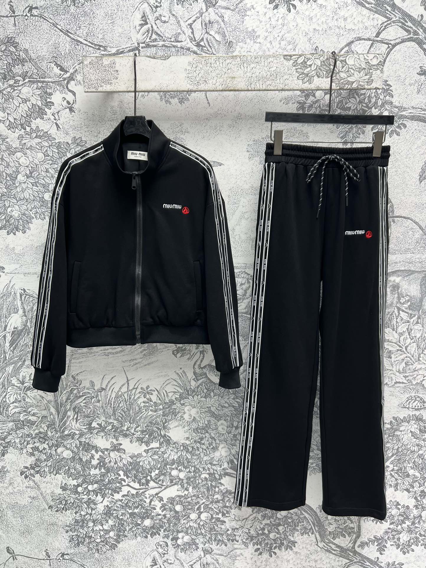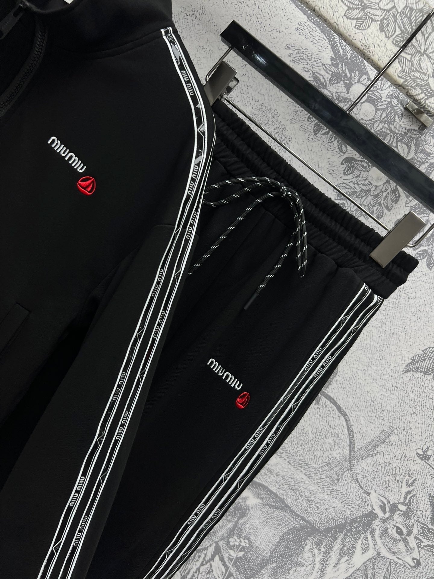 Miu Miu 25 Ribbon Stitching Suits Black Cotton