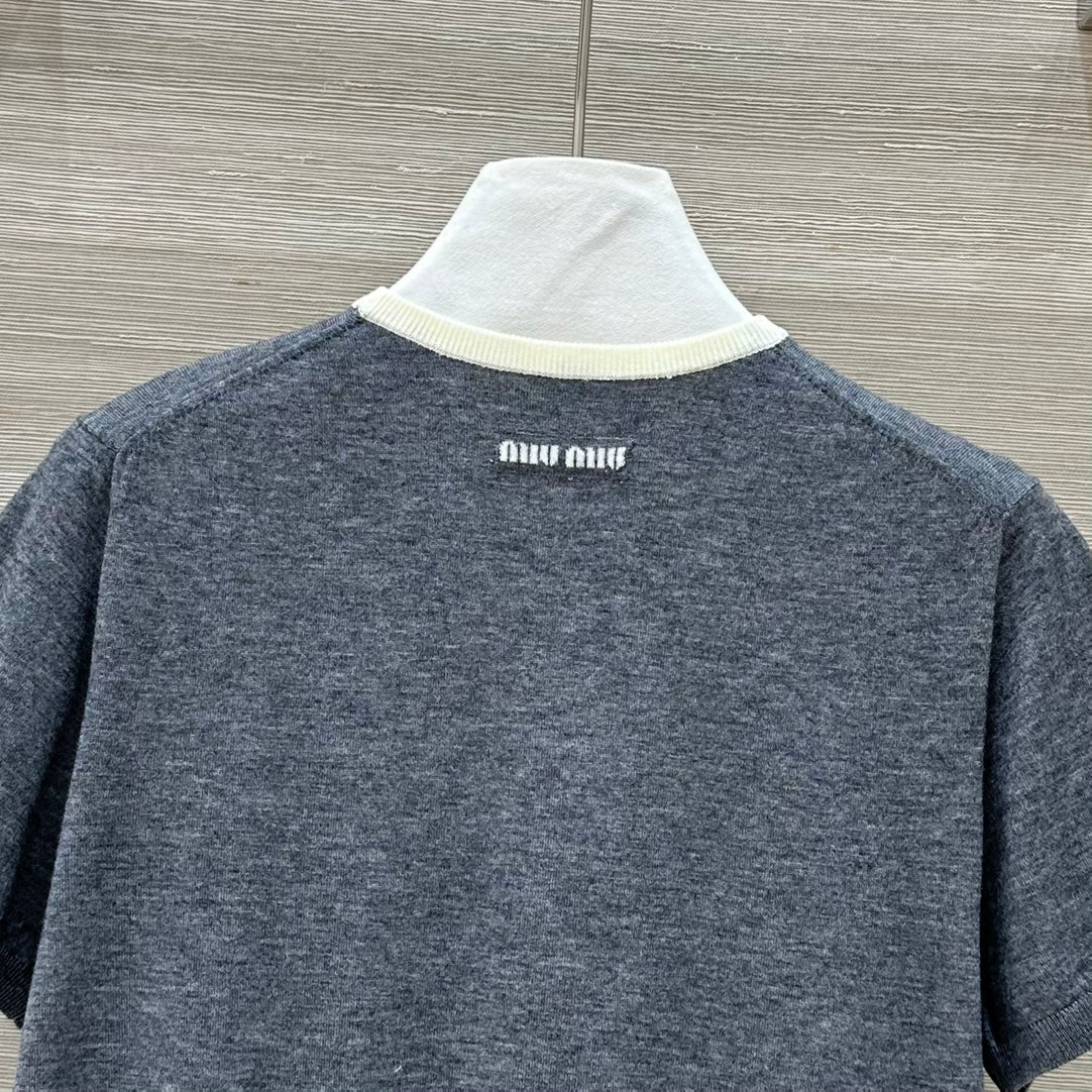 Miu Miu 25 Short-sleeve Top Gray Wool