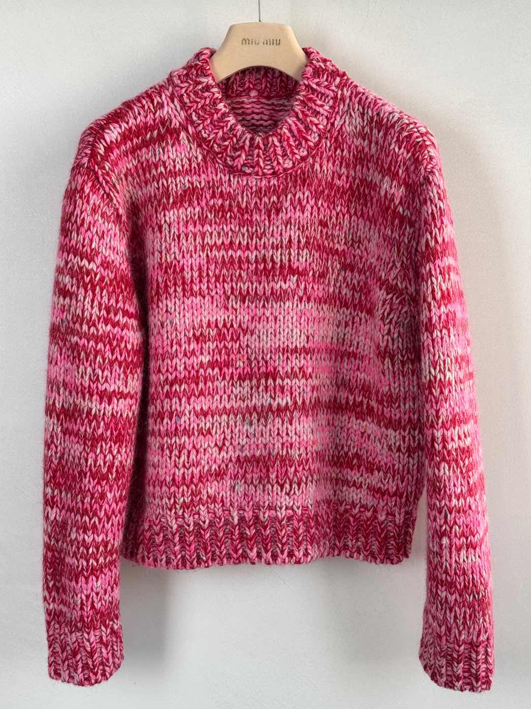 Miu Miu 25 Twisted Snowflake-colored Round-neck Sweater Pink Cashmere